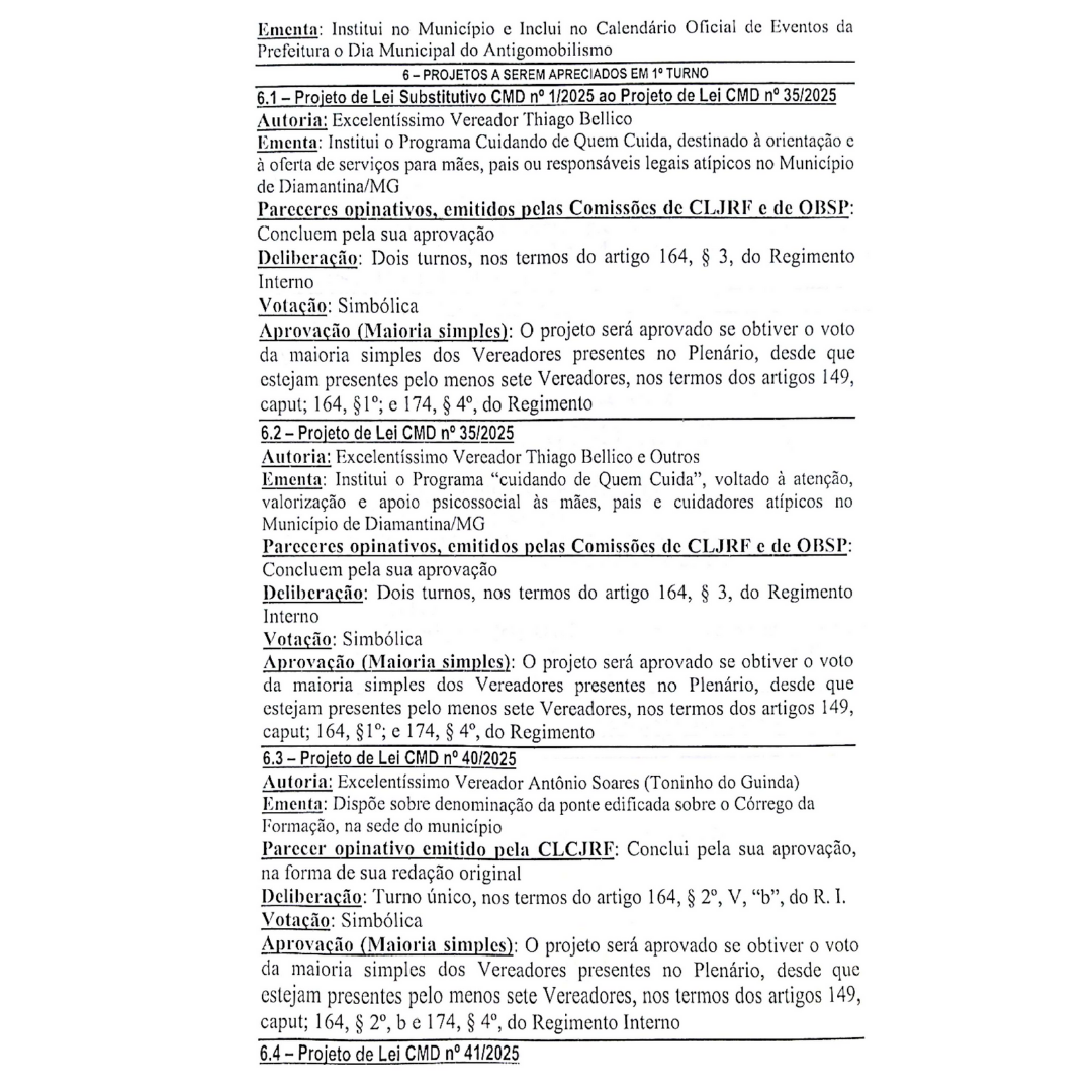PAUTA DA REUNIÃO ORDINÁRIA - 06/10/2025